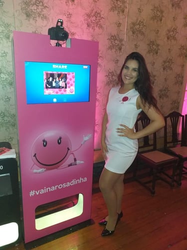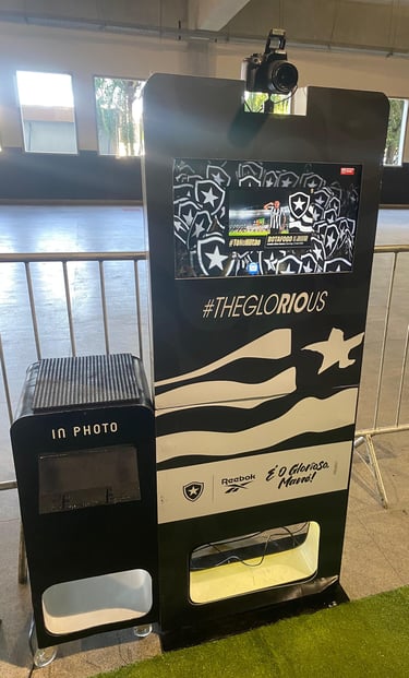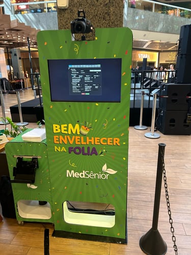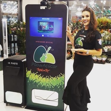 A imagem final pode ser impressa na hora ou compartilhada digitalmente, gerando engajamento e uma recordação divertida e personalizada da sua marca ou evento.