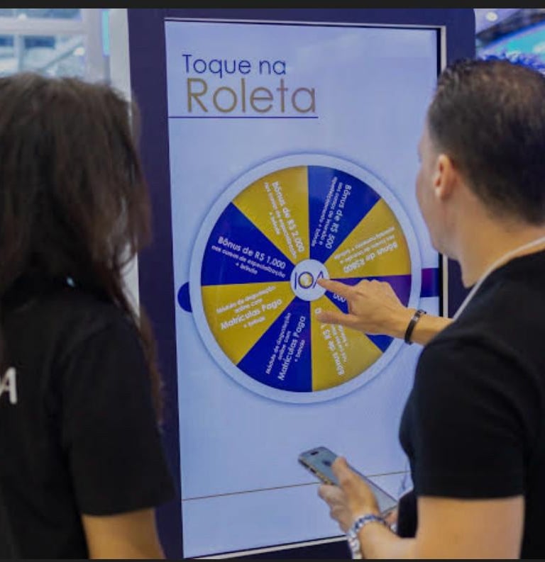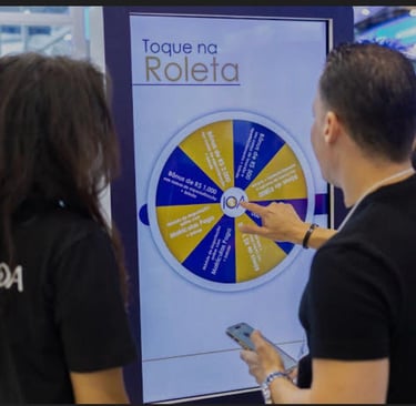 Que tal atrair a atenção do público com jogos eletrônicos superdivertidos e com a cara da sua marca? Através de um totem interativo com tela touch de 60”, criamos experiências personalizadas para eventos, com opções como roleta de prêmios, jogo da memória e muito mais. É diversão na certa e engajamento garantido!